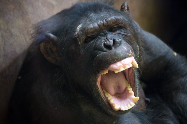 Adult chimps make very unhappy pets – this one has lost a canine. Sebastian Niedlich